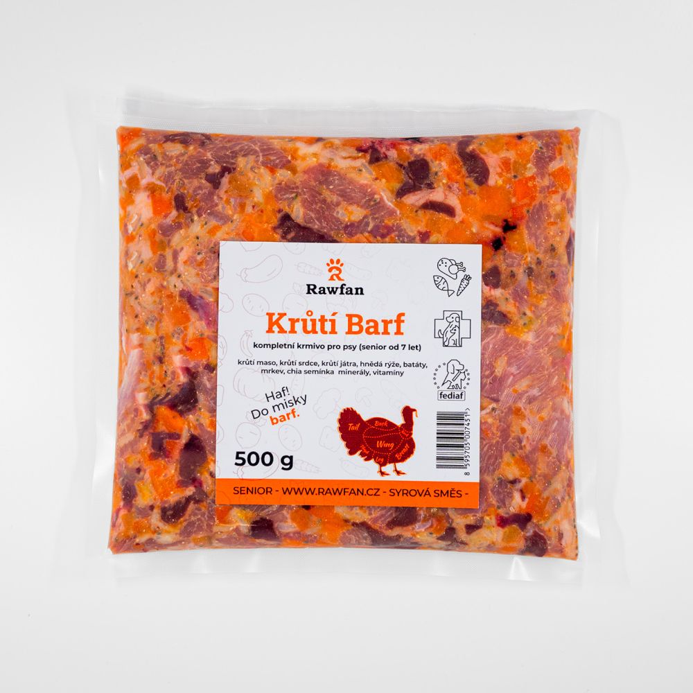 • 1× 500 g KRŮTÍ BARF senior – lehce stravitelné maso vhodné pro citlivé zažívání.