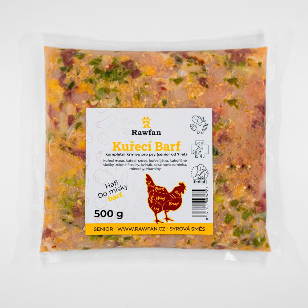 • 1× 500 g KUŘECÍ BARF senior – šťavnaté maso, které nezatěžuje organismus.