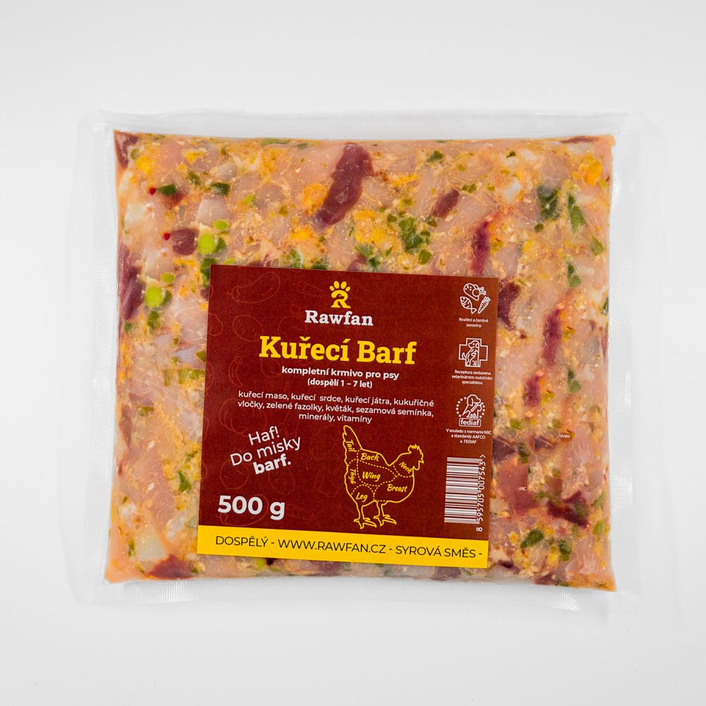 • 1× 500 g KUŘECÍ BARF pro dospělé psy – klasika, kterou miluje každý pes.