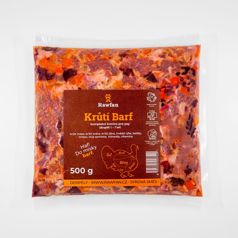 • 1× 500 g KRŮTÍ BARF pro dospělé psy – lehké a chutné maso pro snadné trávení.
