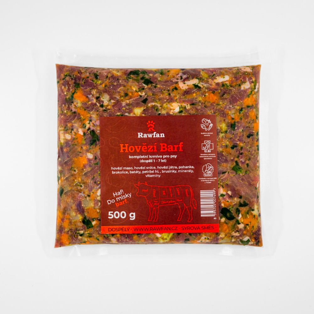• 1× 500 g HOVĚZÍ BARF pro dospělé psy – silné a výživné maso pro plnou vitalitu.